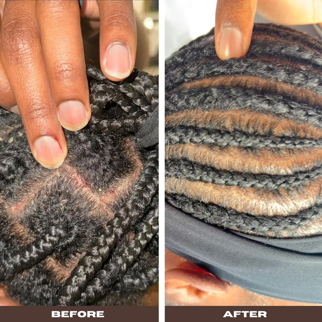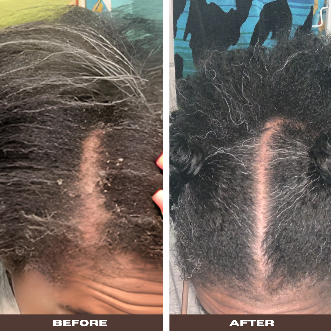Our best-seller and essential scalp-care staple, BiomeSafe Scalp Solution, is a must-have for anyone dealing with scalp issues. This freshly-scented herbal liquid leave-in features powerful probiotic extracts (bioactives) designed to quickly raise rough scales and flakes while soothing incessant itching.